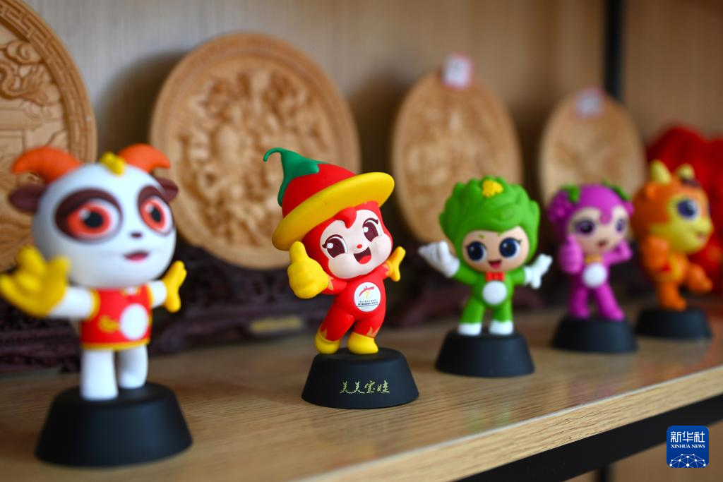 这是10月31日在隆德县杨氏彩塑艺术馆拍摄的彩塑文创产品。