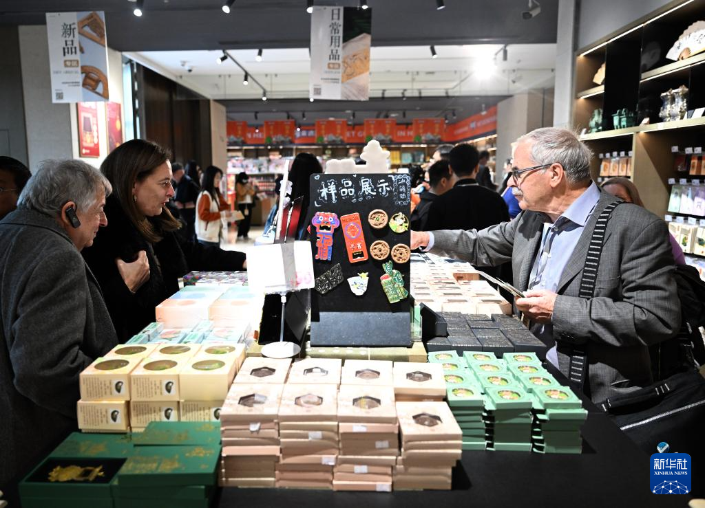 11月5日,外宾在河南省安阳市殷墟博物馆与一名小朋友交流。