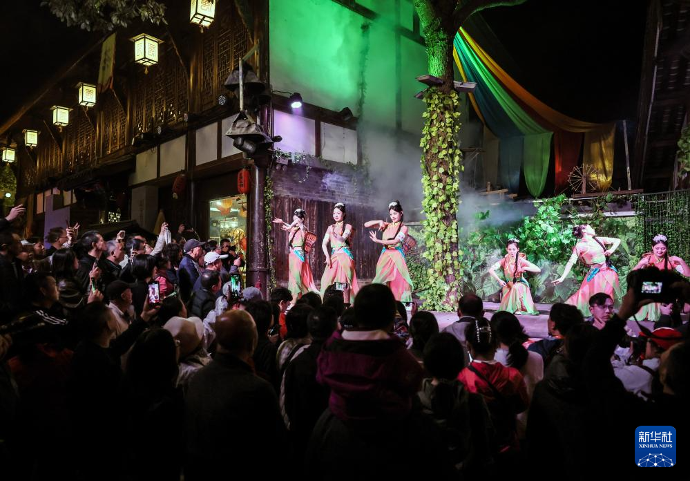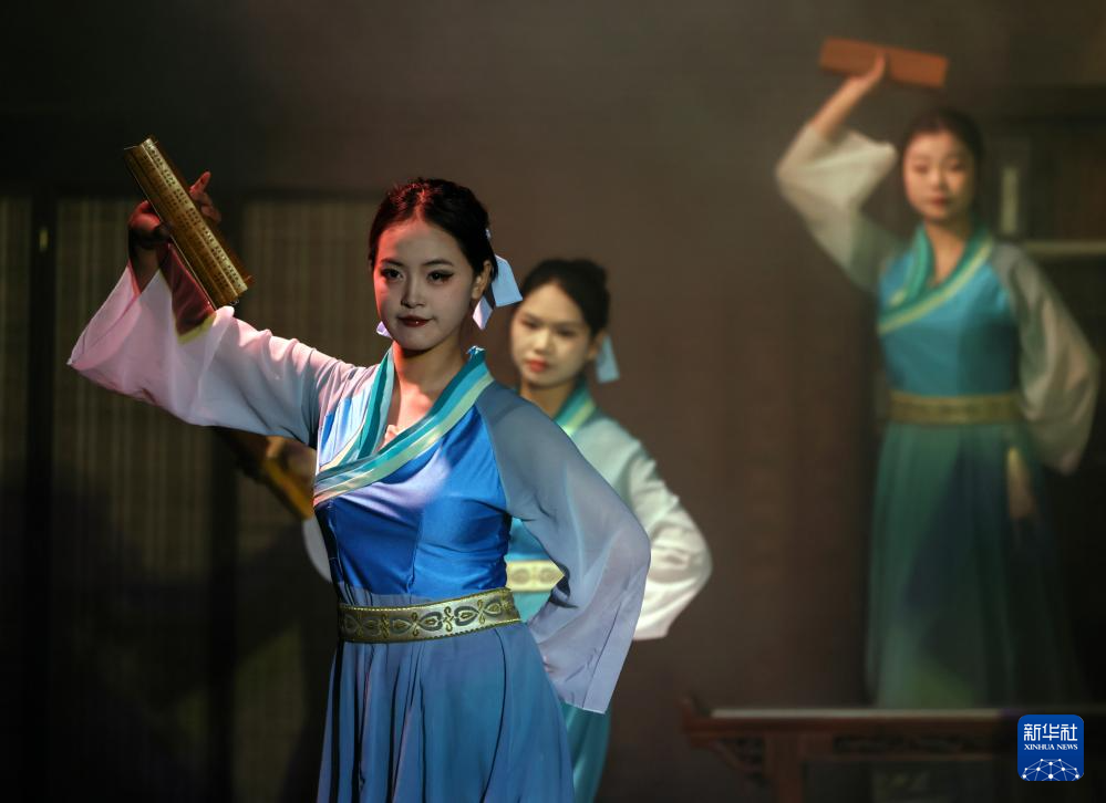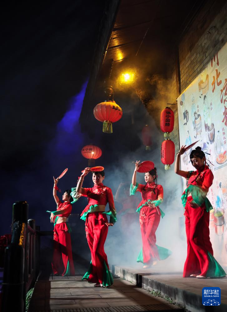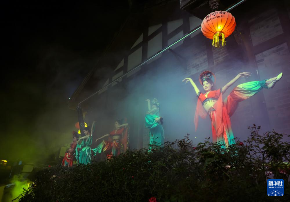 11月5日拍摄的实景演出《蜀道盛世》中的“采桑舞”。