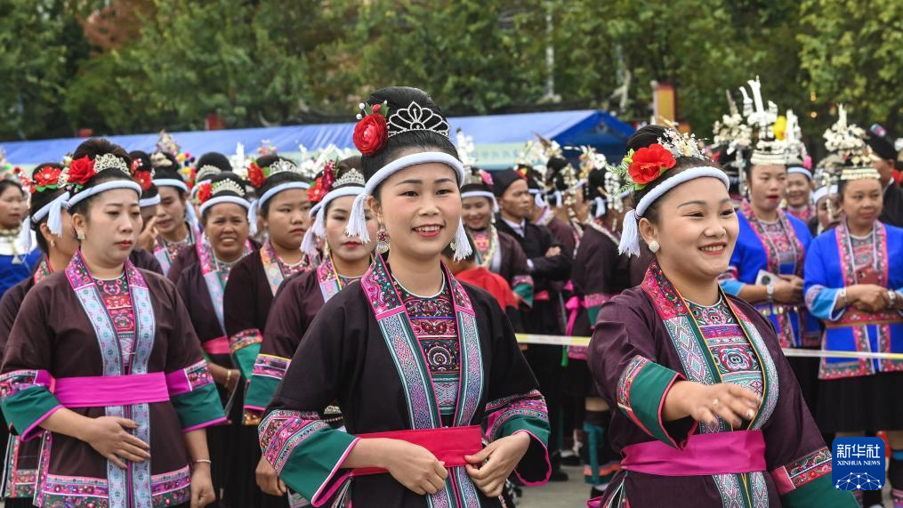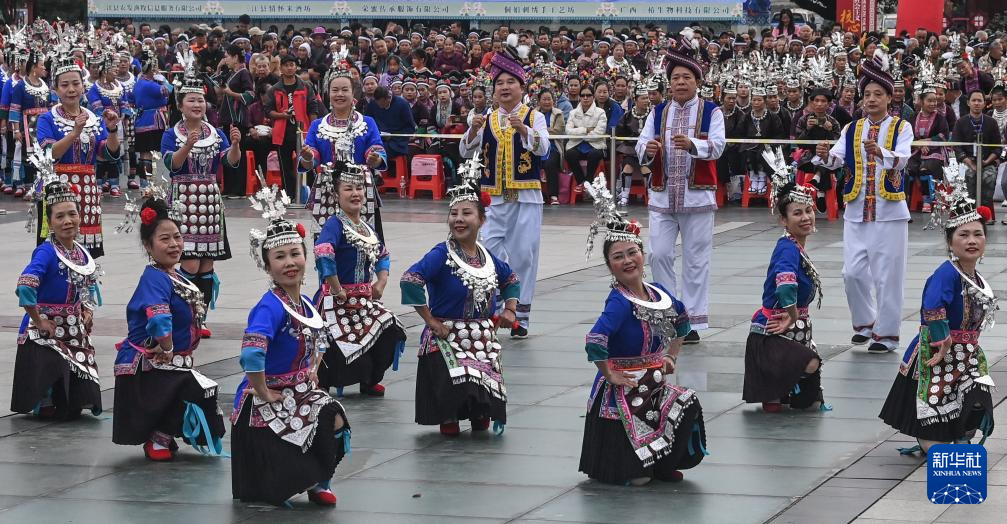 11月9日,在广西三江侗族自治县多耶广场,侗族群众参加多耶节庆祝活动。