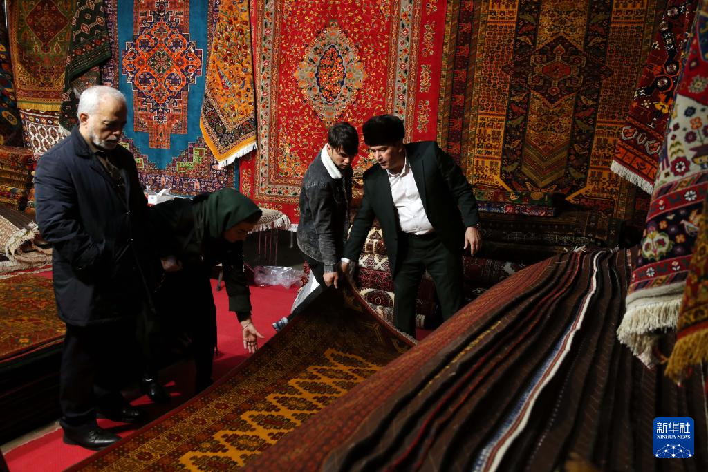 11月14日,在伊朗首都德黑兰,顾客在伊朗国际手工地毯展上选购地毯。