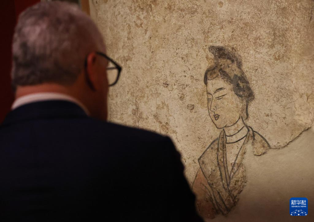 11月18日,在位于法国巴黎的吉美国立亚洲艺术博物馆,一名观众参观“中国·唐——一个多元开放的朝代(7至10世纪)”展览。