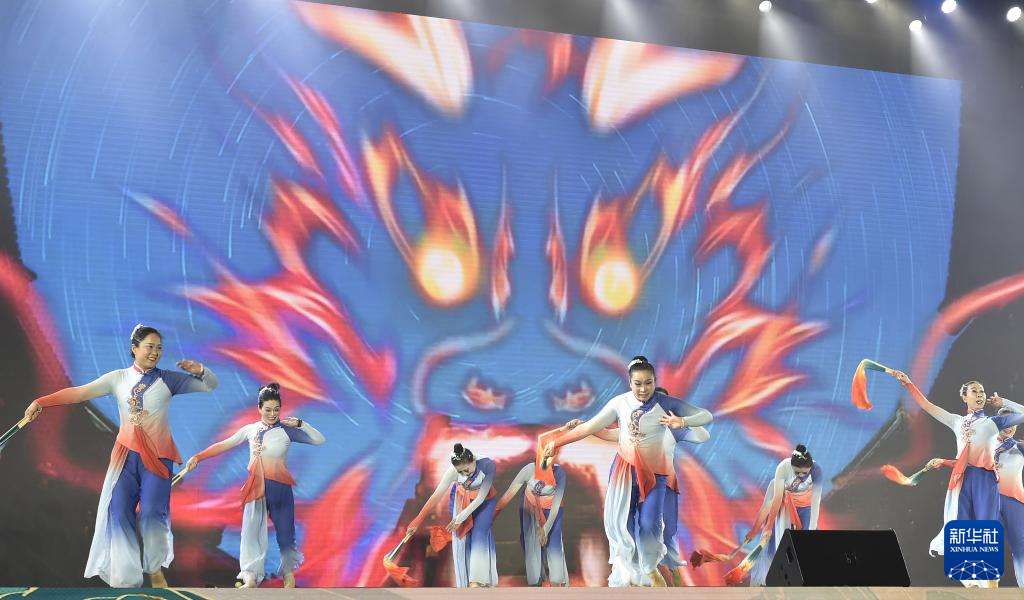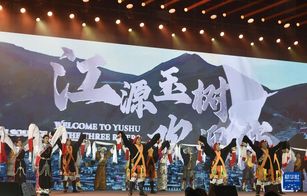 11月23日晚,演员在表演民族歌舞非遗秀《三江源头祝酒歌》。