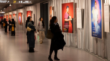 11月24日,人们在萧县“十月古会”书画展览上参观。