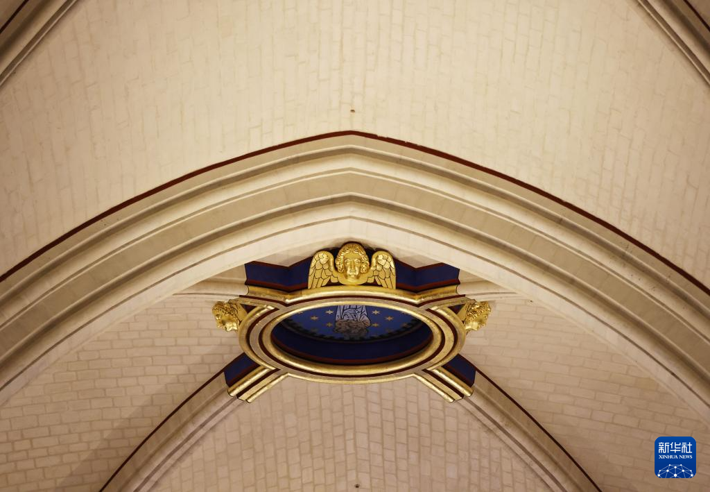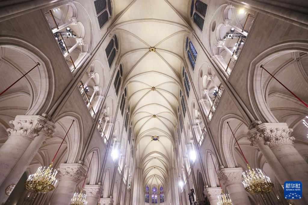 这是12月8日在重新开放仪式上拍摄的巴黎圣母院内景。