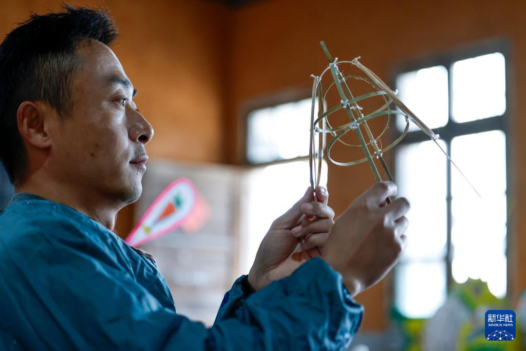 12月9日,在安徽省黄山市黟县宏村,何继星在制作花灯。