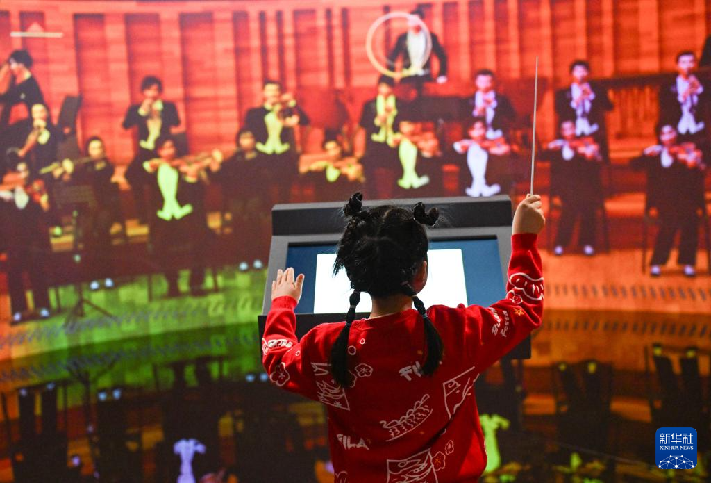 12月22日,一名小朋友在国家大剧院《艺象新生——国家大剧院数字艺术展》上体验互动影像装置。