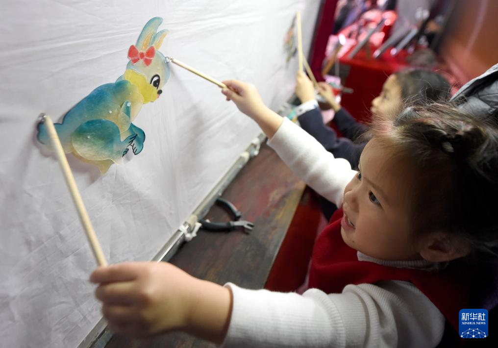 12月22日,一名小朋友在国家大剧院一层公共空间体验皮影戏。