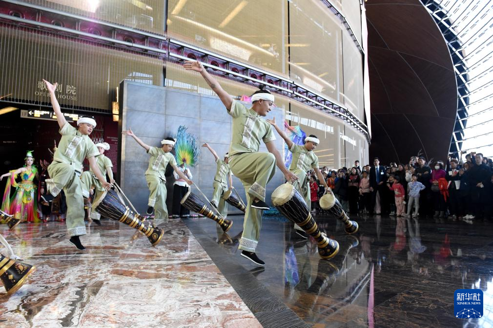 12月22日,演员在国家大剧院橄榄厅表演云南西双版纳非遗歌舞。