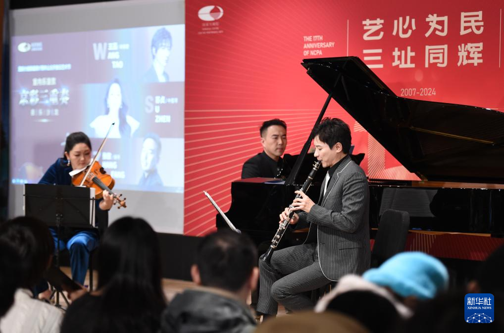 12月22日,在国家大剧院新闻发布厅内,演员在演奏。