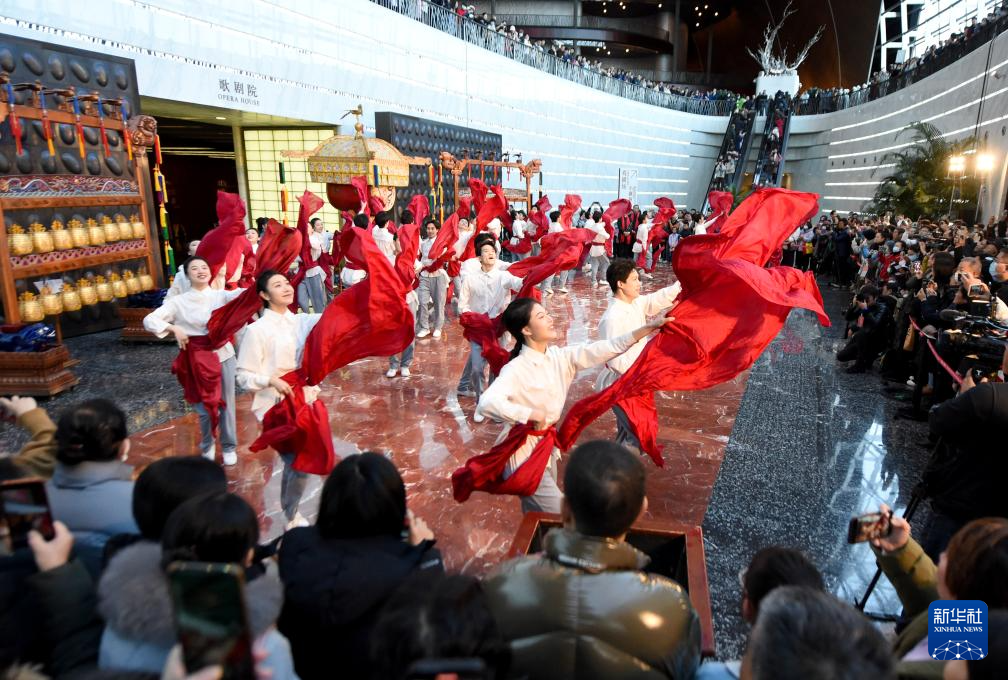 12月22日,演员在国家大剧院一层公共空间表演。
