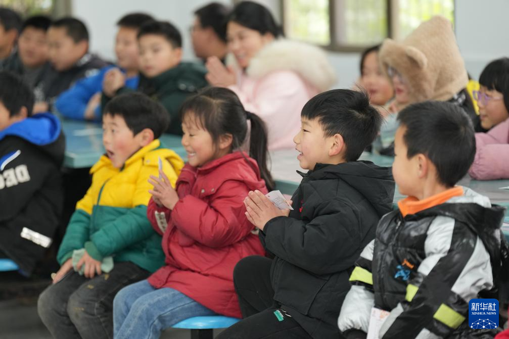 12月24日,长沙市望城区沱市小学学生在欣赏儿童剧。