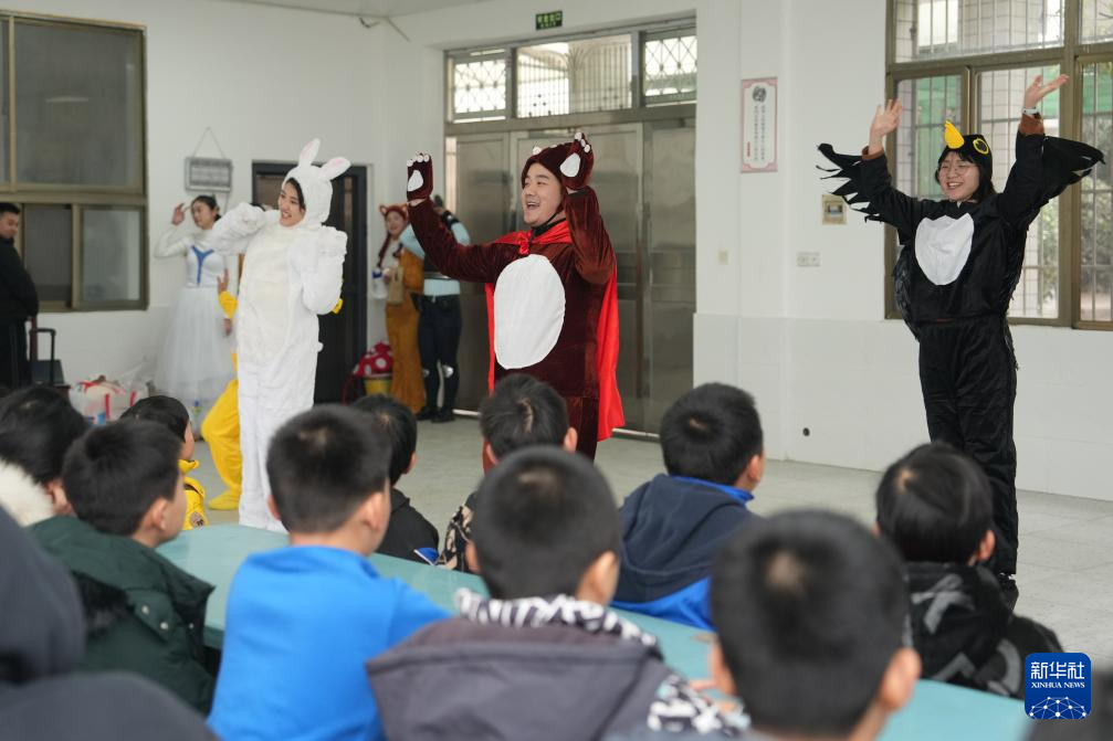12月24日,长沙市群众艺术馆的演员在长沙市望城区沱市小学表演儿童剧。