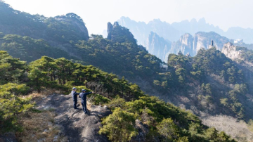 12月19日,舒建军(右)与同事谢晓强在宏村一处露台咖啡店内检查。
