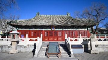 12月18日,胡晓雯在西递村敬爱堂内巡视检查。