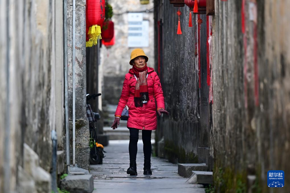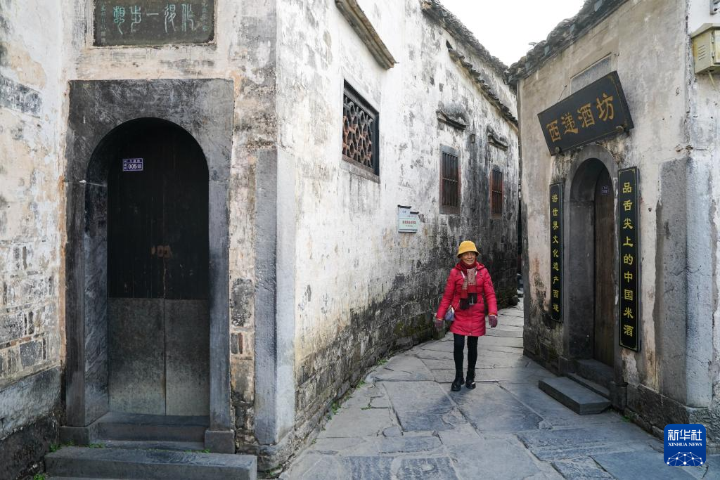12月18日,胡晓雯在西递村中行走。