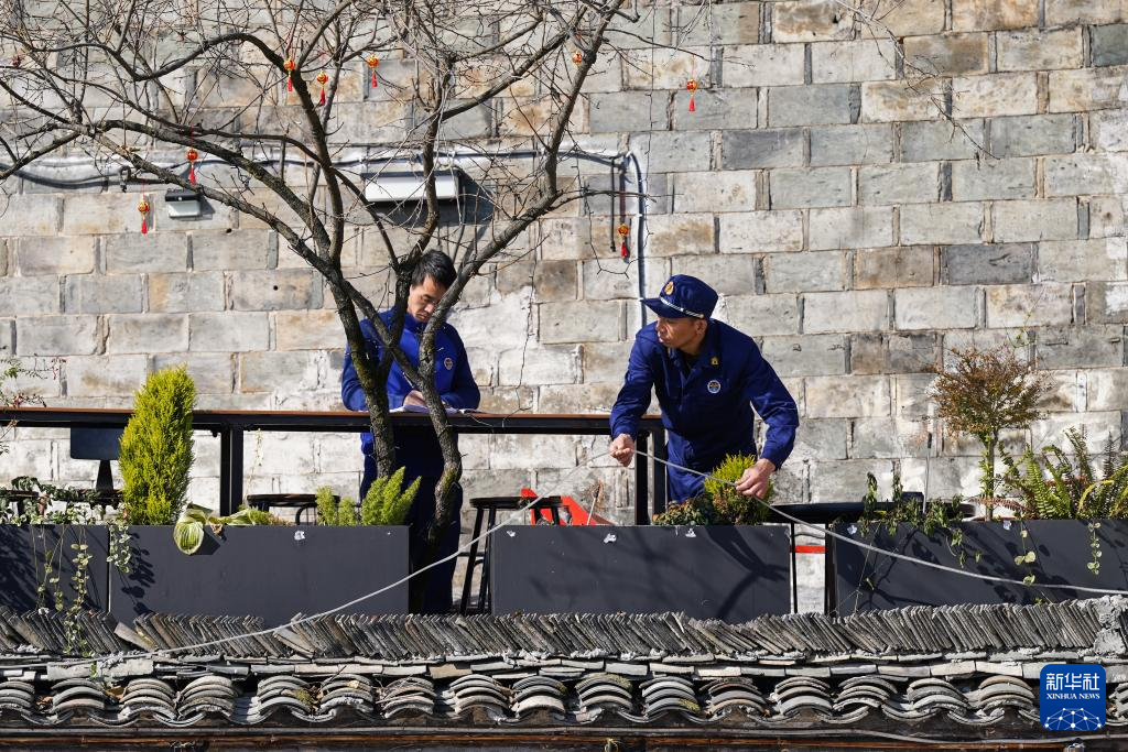 宏村中的建筑以砖木结构为主,防火是第一要务。41岁的舒建军是宏村镇专职消防队的队长,规律性的“值守、巡逻、上户”是舒建军工作的主要内容。“我们全天候巡逻,白天查看有无电线裸露、飞线充电等现象,晚上则要提醒商户闭店时及时关电源、关火源。”除了日常巡逻外,他和同事要定期对村里的商户、民宿等进行消防检查。2024年,他带队排查的消防安全隐患就超过130项。