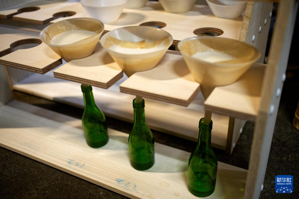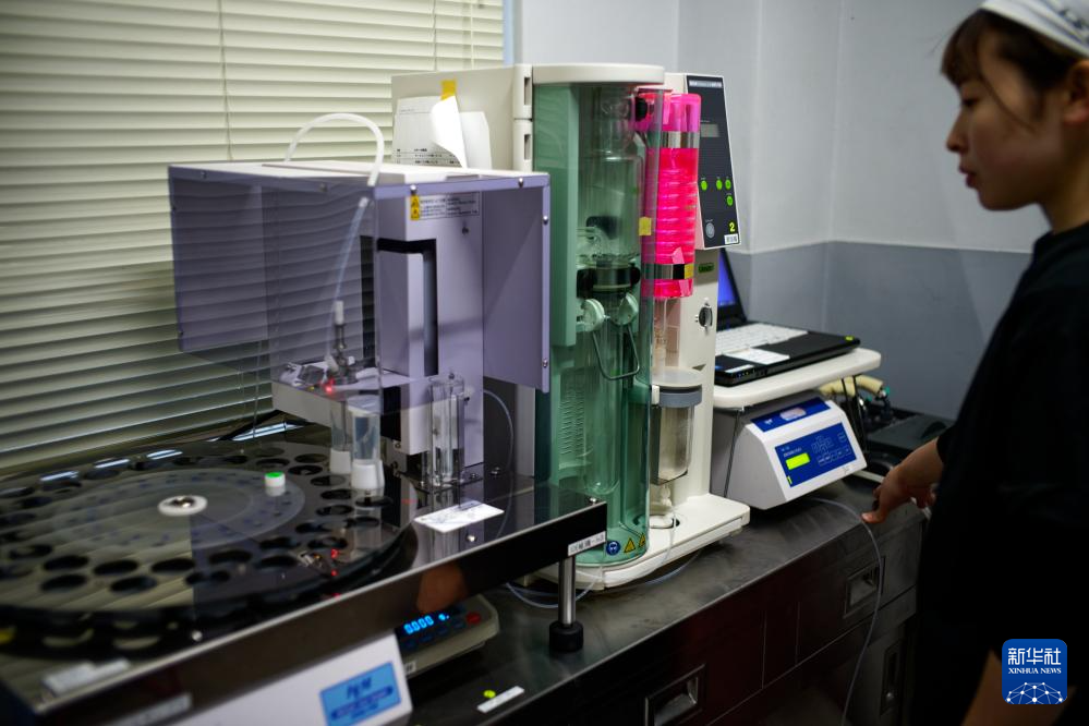 12月17日,工作人员在日本福井县常山酒厂实验室测试当日从酒桶提取的样酒。