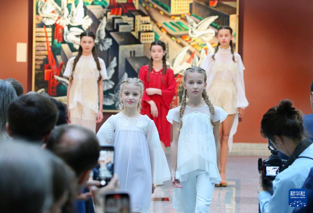 12月23日,在白俄罗斯首都明斯克,儿童模特展示以白俄罗斯剪纸元素为灵感设计的时装。