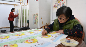 12月29日,民间艺人在山东省枣庄市“红石榴”喜馍制作工坊捏制“红石榴”喜馍上的装饰物。