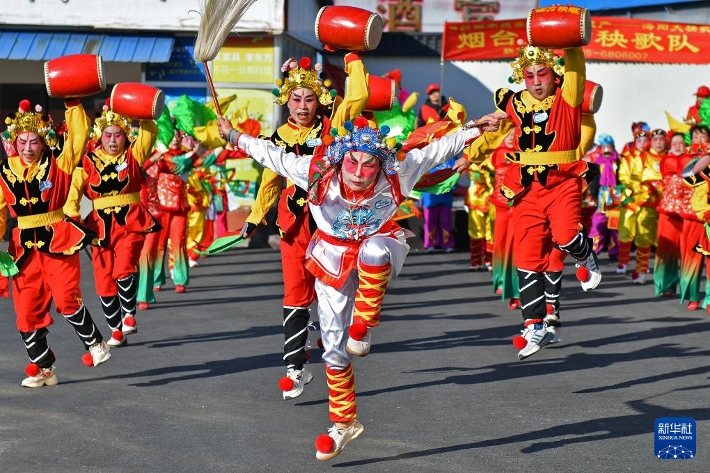 12月29日,民间艺人在山东省烟台市芝罘区东方文化市场进行民俗表演。