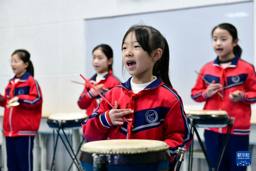 12月30日,在惠民县胡集镇第一小学,同学们学习西河大鼓。