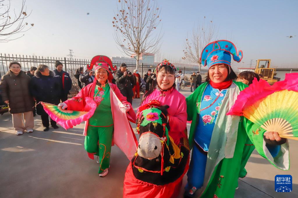 12月30日,河北省遵化市苏家洼镇的民间艺人为村民表演迎新年民俗节目。