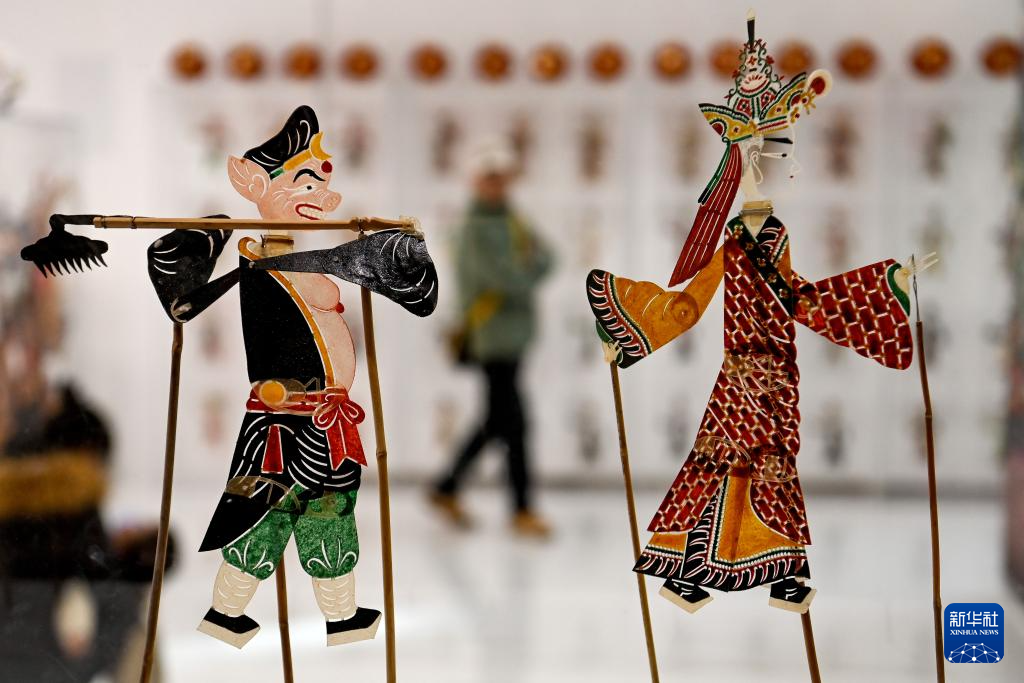 1月7日,游客在非遗年货集市上了解皮影技艺。