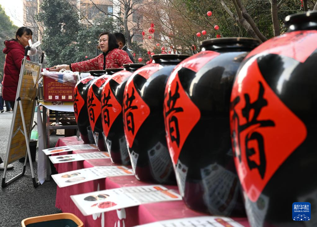 1月19日,居民在社区庙会上采购传统工艺制造的陈醋。