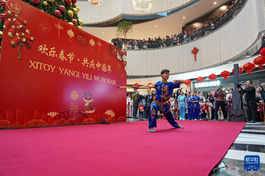 1月19日,“欢乐春节·共庆中国年”文艺快闪演出和文化体验活动在乌兹别克斯坦首都塔什干举行,现场呈现了中国民乐、歌舞、舞狮、武术等精彩演出。此外,观众还参与了写春联、剪窗花、做灯笼、品香茗等民俗体验活动,沉浸式体验中国文化独特魅力,感受欢乐春节喜庆祥和氛围。