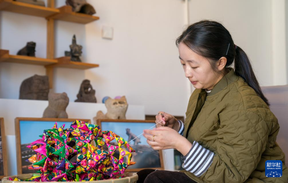 昆明市“90后”菱角编制艺人杨洁从云南艺术学院毕业后一直从事菱角编制工作。据她介绍,每年春节前夕她会很忙碌。这段时间,她会收到来自各地非遗展会和集市的邀请,也会按照客户要求定制节庆主题作品。
