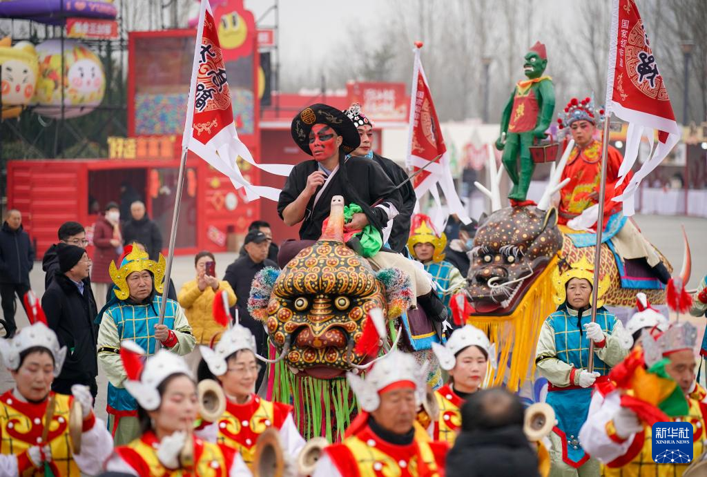 2月2日,民间艺人在河北省晋州市新世纪广场进行民俗表演。