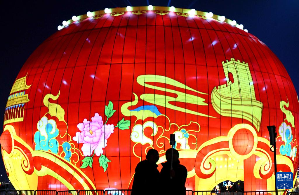 2月1日,游客在河北省石家庄市正太广场赏灯。