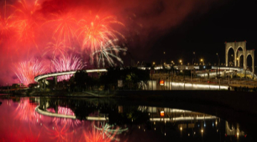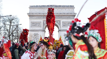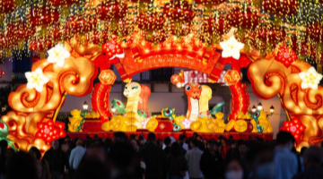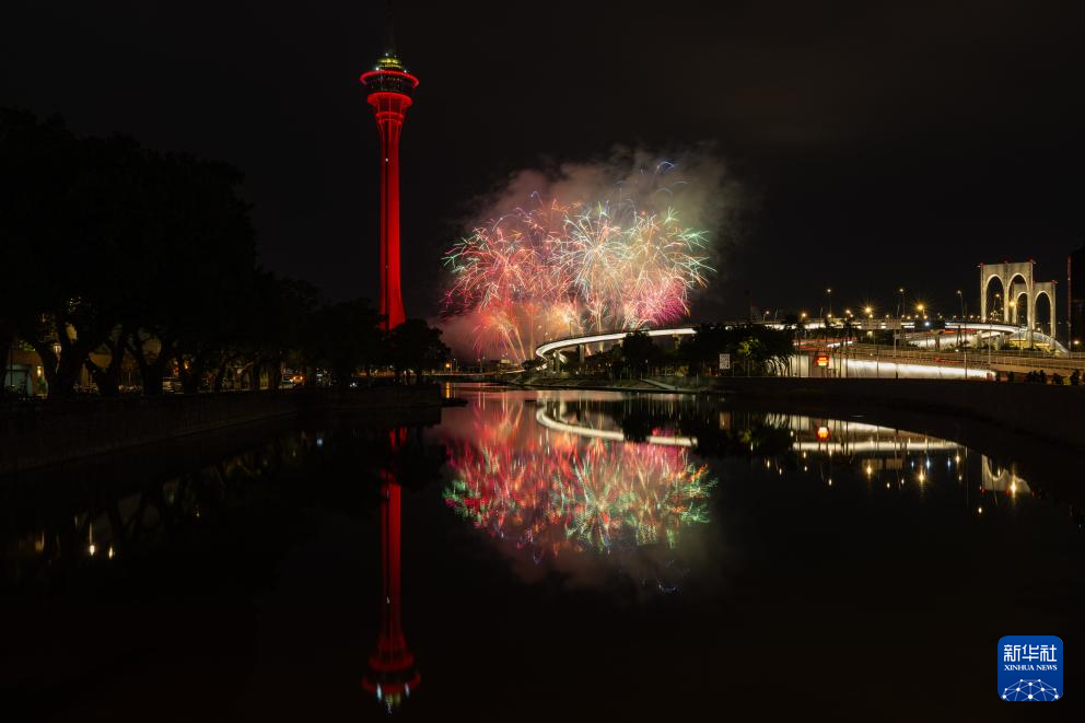 2月4日,澳门特区政府旅游局举行的“欢乐春节灵蛇献瑞烟花汇演”第二场在旅游塔对出海面绚丽绽放。
