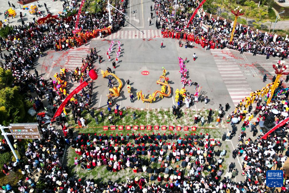 2月6日,人们在南涧县龙灯会上表演舞龙(无人机照片)。
