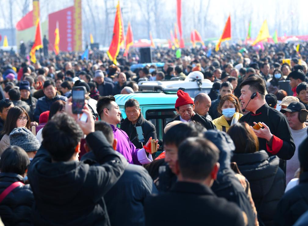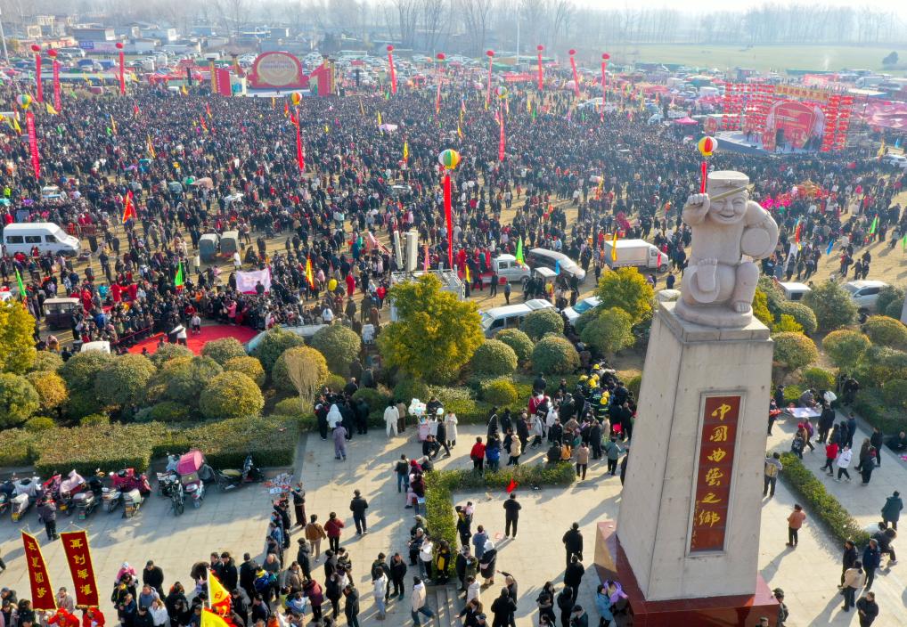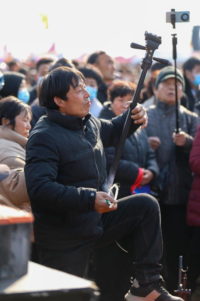 当日是农历正月十三,在河南省平顶山市宝丰县马街村,一场曲艺说唱盛宴在麦田里拉开大幕。来自全国各地的说书艺人聚集于此,吹拉弹唱,说书会友,南腔北调,好不热闹。