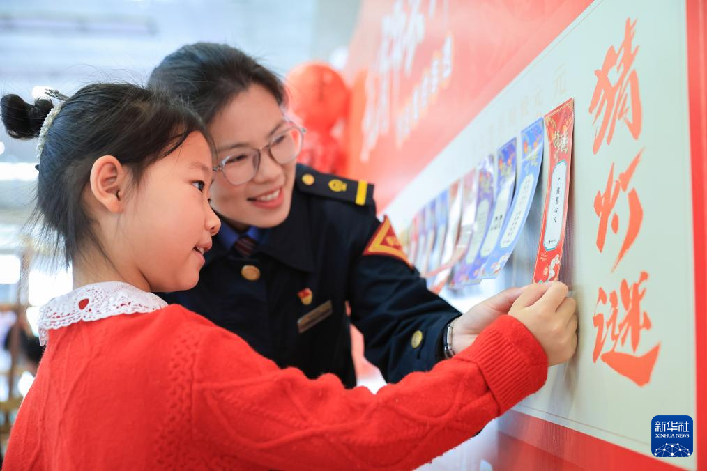 2月11日,小朋友在南京南站举办的迎接元宵节活动上猜灯谜。