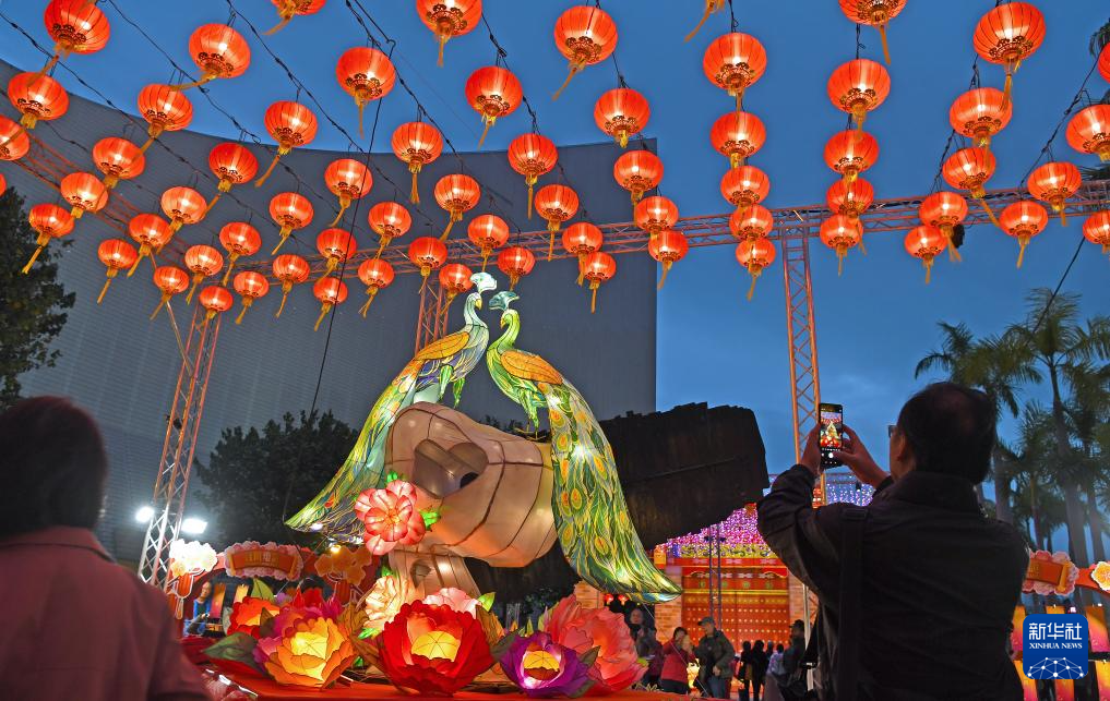 2月11日,人们在香港尖沙咀拍摄彩灯。