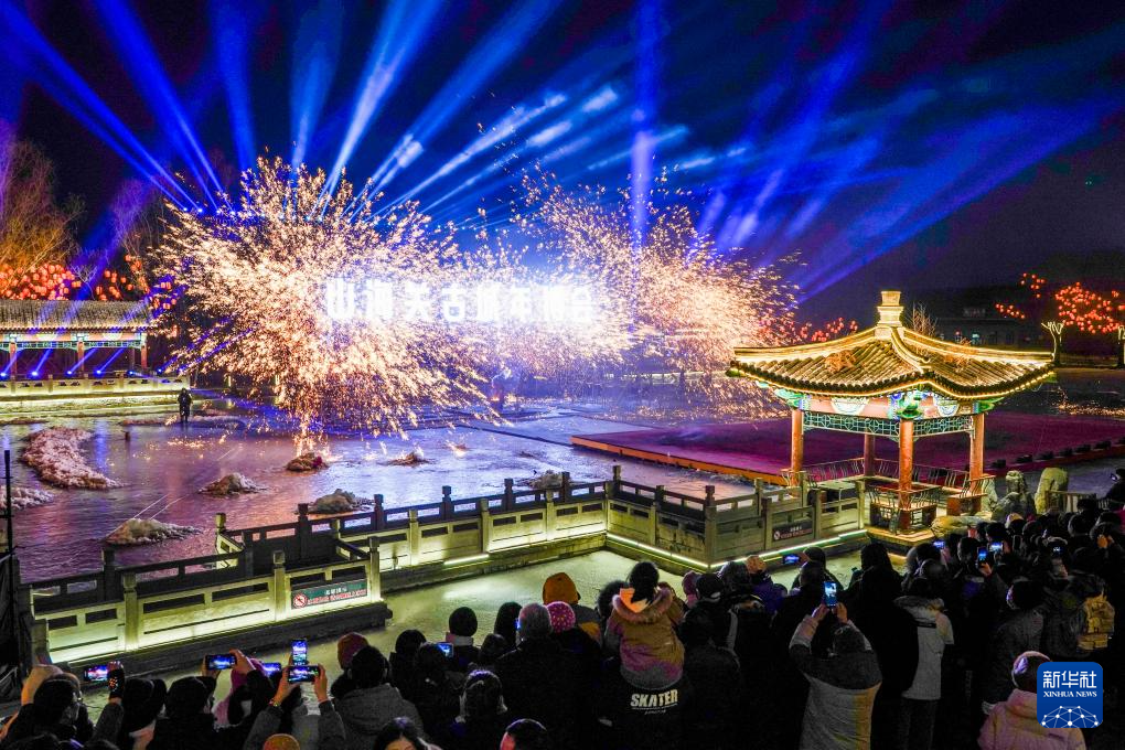 2月10日,游客在河北省秦皇岛市山海关古城景区观看打铁花。
