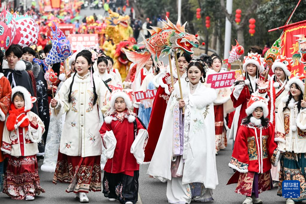 2月11日,巡游队伍进入民俗汇演活动现场。