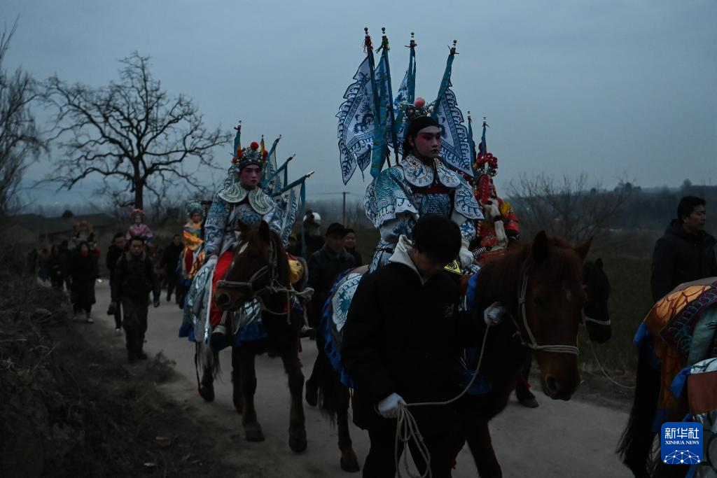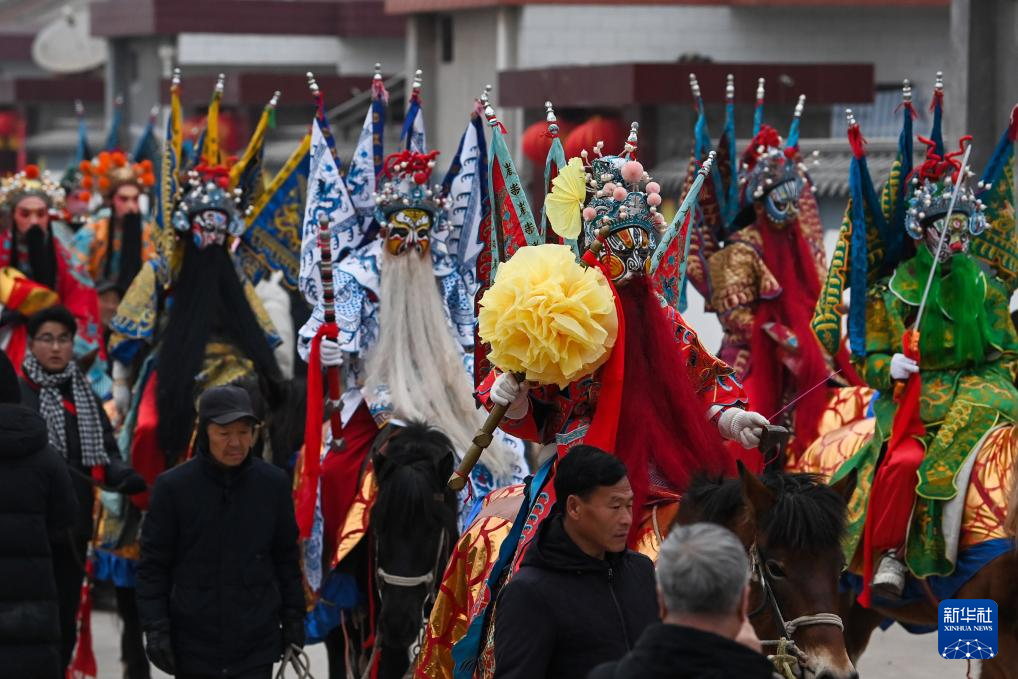 陇县东南镇黄花峪村是著名的“马社火村”,每年春节期间,村民都会表演马社火,挨家挨户送上新春祝福。为了在清晨出发,社火队通常在凌晨三四点就开始准备,演员、化妆师、锣鼓队和后勤保障人员从黑夜忙到天明,共同呈现黄土地上的新春文化盛宴。