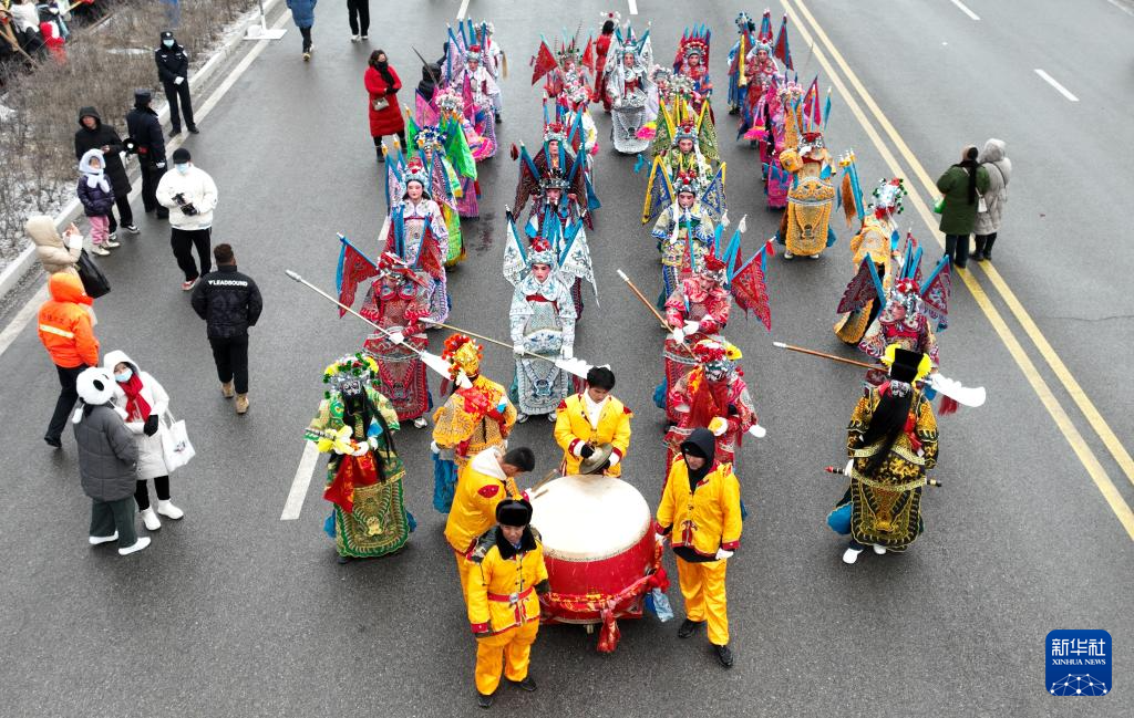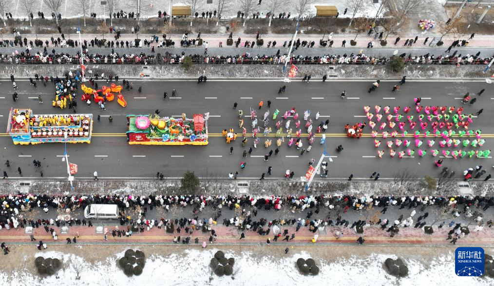这是2月11日拍摄的固原市隆德县2025年新春社火展演现场(无人机照片)。