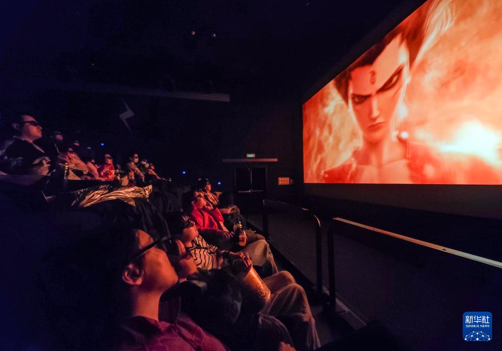 2月16日,在北京市东城区一家影院,观众在观看4D版《哪吒之魔童闹海》。