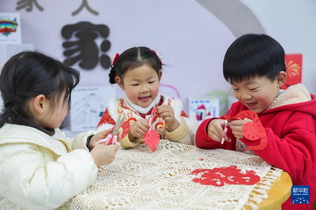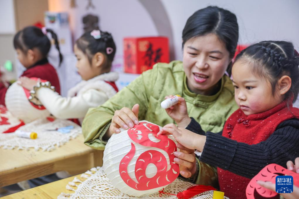 当日,浙江省湖州市长兴县李家巷镇中心幼儿园的师生们以“非遗润童心”为主题,开展新学期传统文化体验活动。孩子们在老师的指导下制作蛇年主题剪纸和灯笼、画心愿、写祝福,感受传统文化魅力。