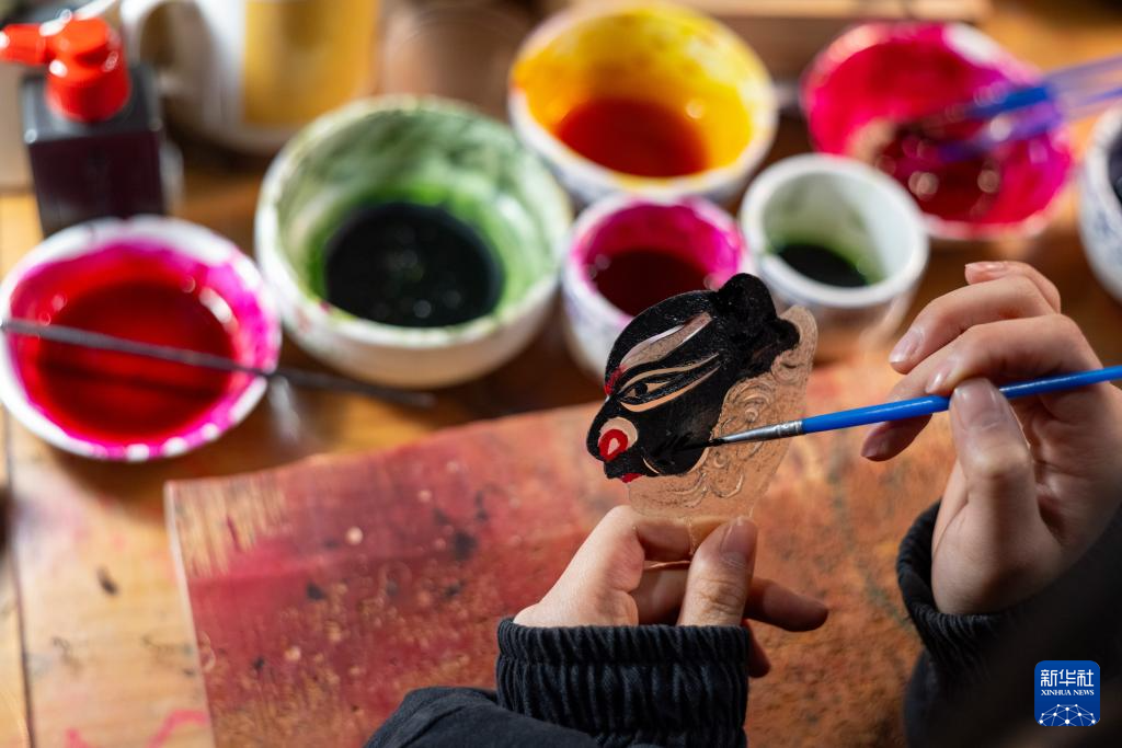 王彪在给影人的头部上色(2月19日摄)。