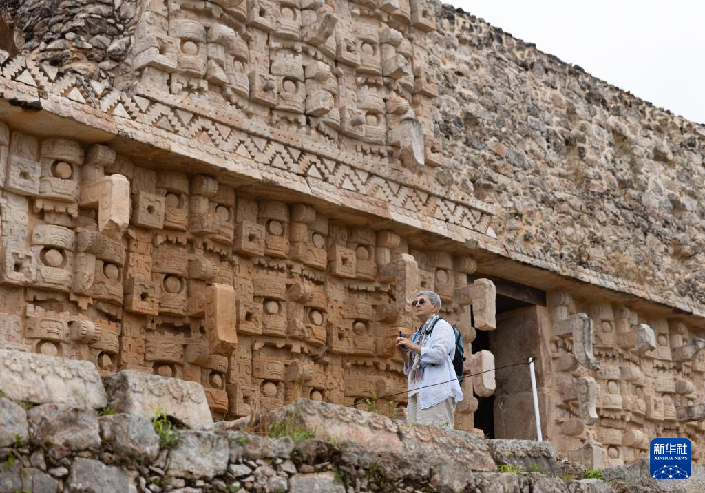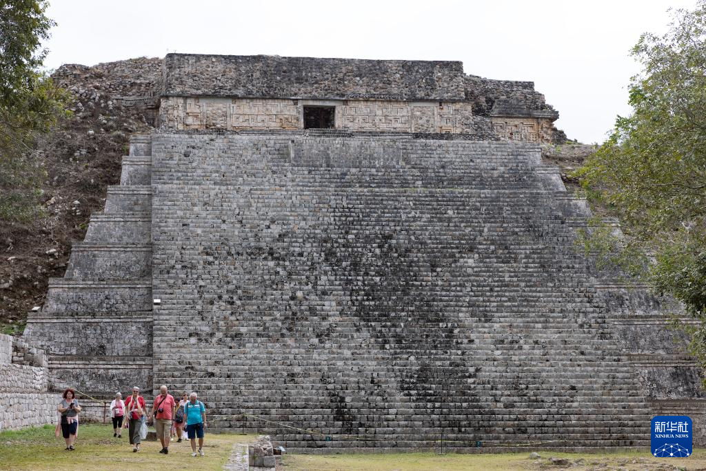 2月21日,游客在墨西哥尤卡坦州参观乌斯马尔遗址。