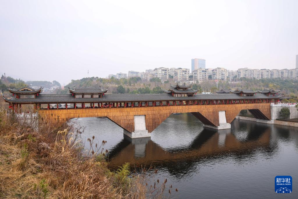 这是2月25日在浙江省温州市泰顺县拍摄的使用中国木拱桥传统营造技艺新建的廊桥——如意桥。