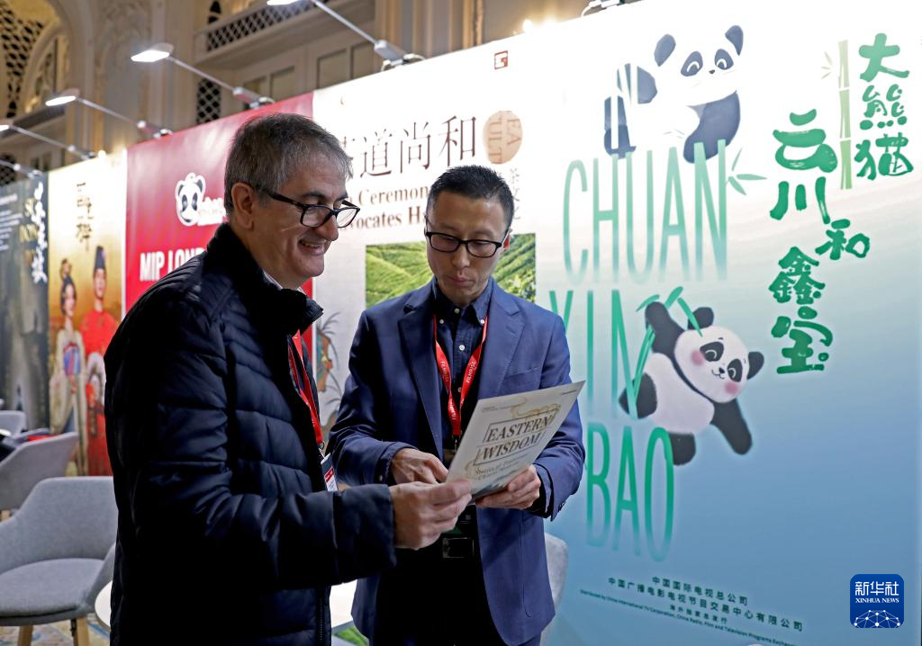 这是2月25日在英国伦敦拍摄的2025伦敦电视节“中国联合展台”一角。