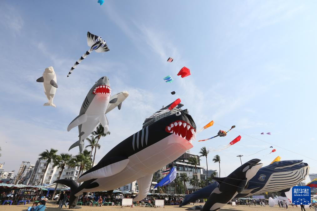 这是2月26日在泰国芭堤雅海滩上拍摄的风筝。