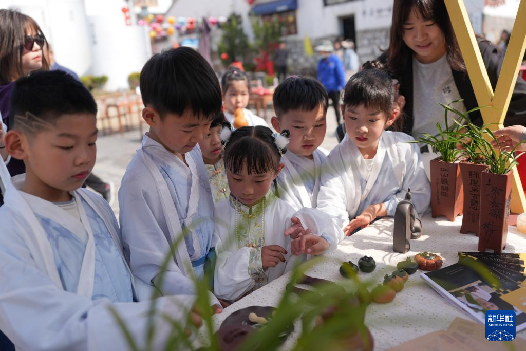 3月1日,在浙江省湖州市吴兴区八里店镇潞村举行的“二月二龙抬头”传统文化活动上,小朋友在观看非遗项目展示。